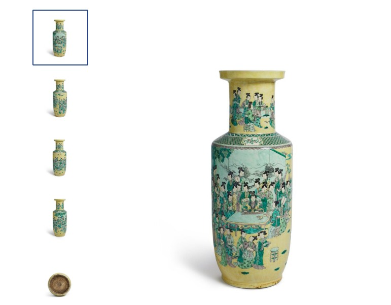 ‘court ladies’ rouleau vase, Late Qing dynasty | 清末 素三彩漢宮春曉圖大棒槌瓶