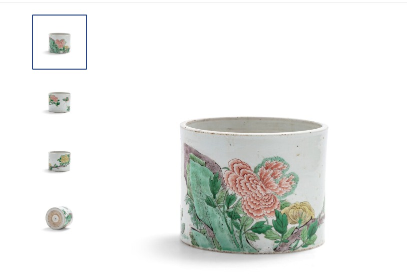 brushpot Late Qing dynasty-Republican period | 清末至民初 五彩蝶戀花紋筆筒